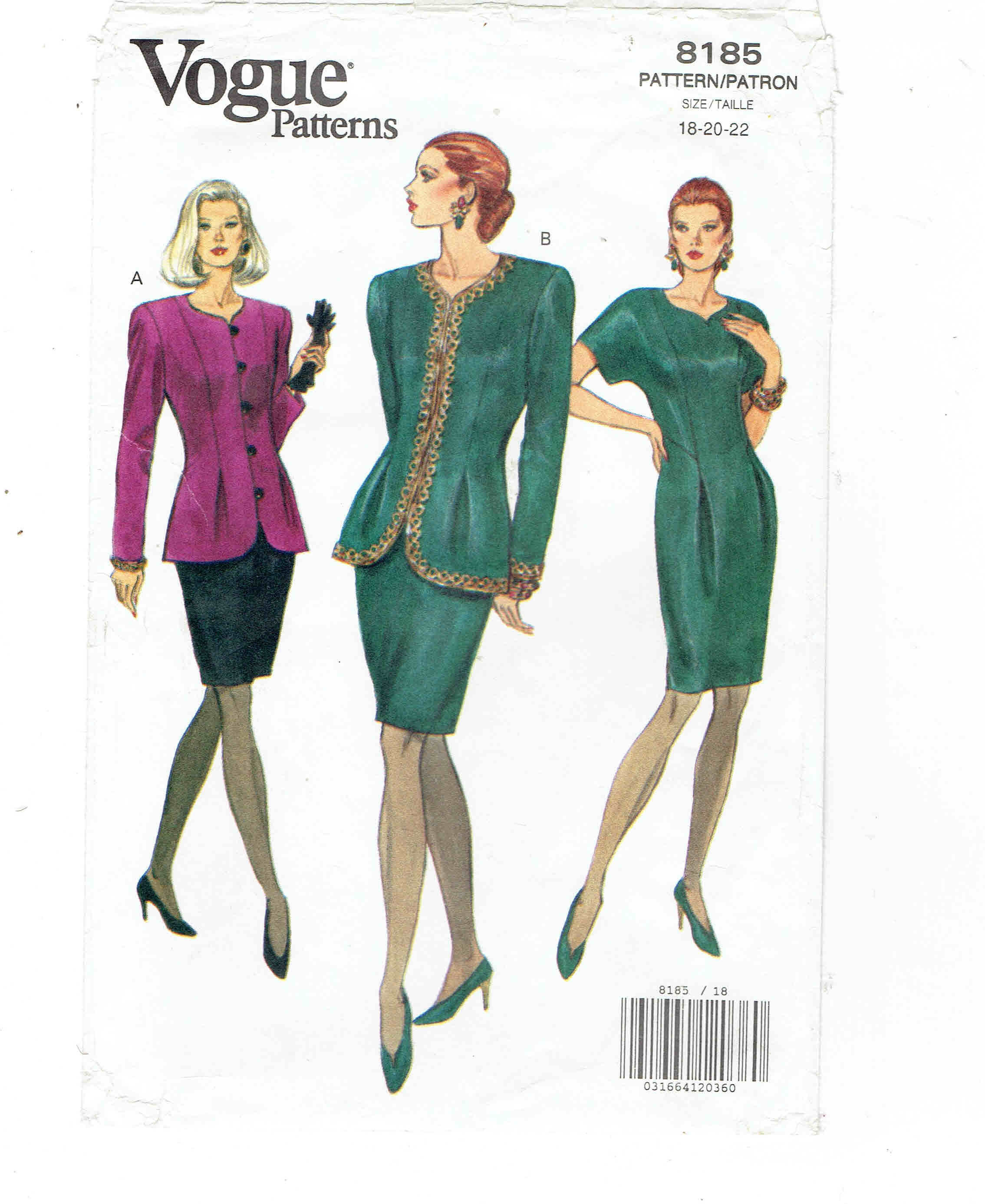 90s Vogue Dress Jacket Pattern 8185 Uncut Sizes 18 20 22 Etsy